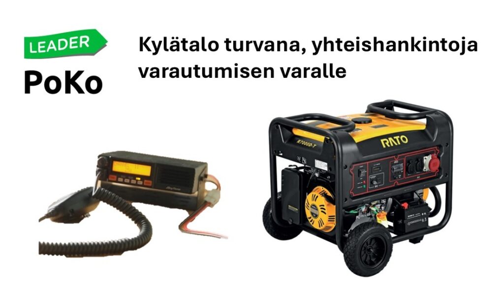 PoKo ry toimii hankehakijana, jos kylät haluavat varustella kylätalojaan varautumiseen liittyen. Kyseessä on yhteishanke. Tällä hankkeella ollaan hankkimassa kyläradioita ja aggregaatteja. - Kylätalo turvana, INFO 20.11. yhteishankintoja PoKon alueella varautumisen varalle
